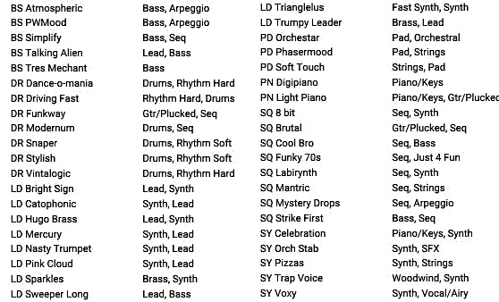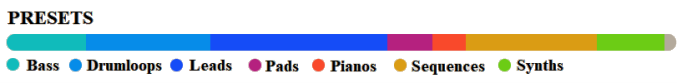 ♫ In this soundset you will find 40 exclusive presets: 5 Bass, 7 Drumloops, 10 Leads, 3 Pads, 2 Pianos, 8 Sequences, 5 Synths;